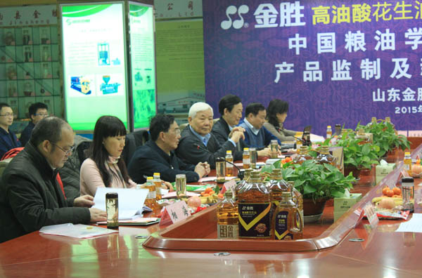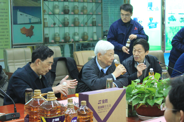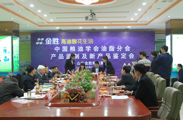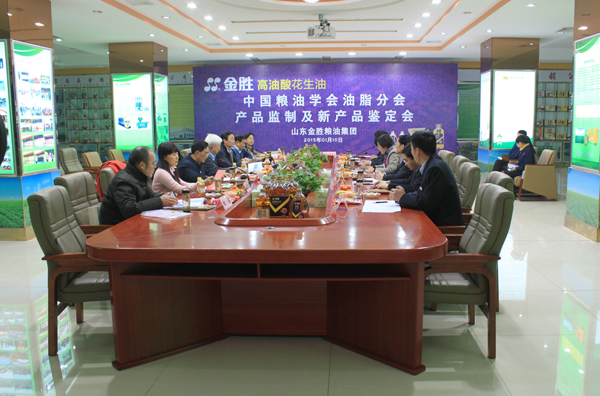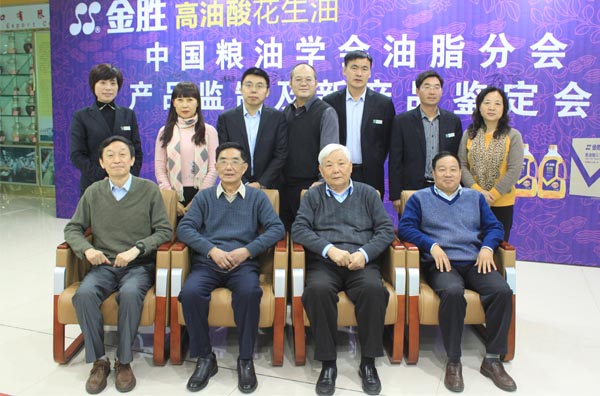 On January 10, 2015, the "Jinsheng High Oleic Acid Peanut Oil - Product Supervision and New Product Appraisal Meeting of the Oils and Fats Branch of the China Cereals and Oils Society" was grandly held in the exhibition hall conference room of the R&D Building of Shandong Jinsheng Cereals and Oils Group. The meeting specially invited experts such as Professor Wang Ruiyuan, chief expert of the China Cereals and Oils Society and president of the Oils and Fats Branch of the China Cereals and Oils Society, and Professor Hu Chengmiao, executive vice chairman and secretary-general of the China Cereals and Oils Society. At the same time, Deputy County Magistrate Comrade Zheng Peiqin, Director of the Science and Technology Bureau Comrade Han Shengchen and other relevant leaders attended the meeting.