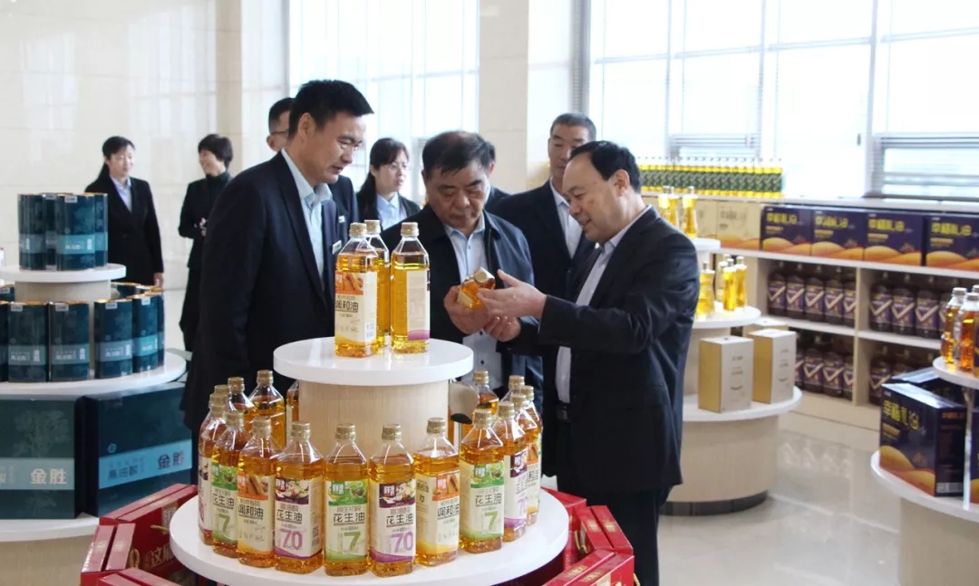After the symposium, Chairman Gao guided Chairman Liu and his party to visit Jinsheng E-commerce Building, Jinsheng Peanut Cultural Museum, Jinsheng National Peanut Processing Technology R&D Center, high-end peanut oil with an annual output of 600,000 tons, specialty vegetable oil, peanut products and Agricultural specialty food processing lines, constant-temperature oil depots with a storage capacity of 100,000 tons, and fully automatic filling production lines with an annual output of 400,000 tons and other production workshops, product experience centers, and group cultural exhibition halls. During the visit, Chairman Liu and his party spoke highly of Jinsheng's corporate development planning, industry-university-research cooperation, on-site management, industrial chain extension, and cultural concepts.