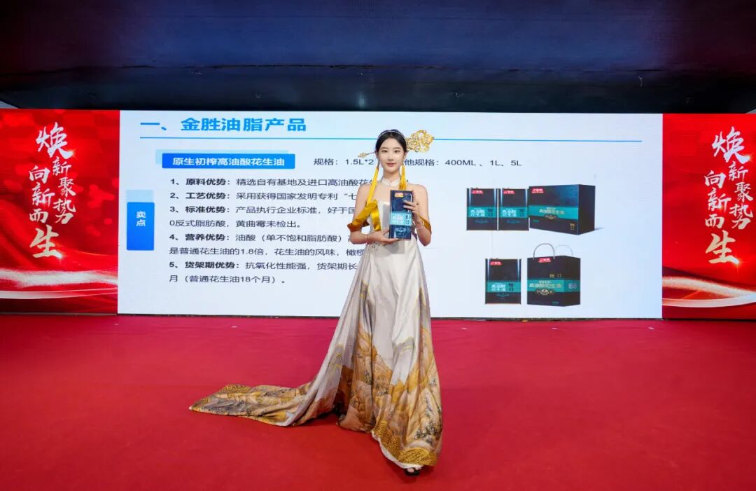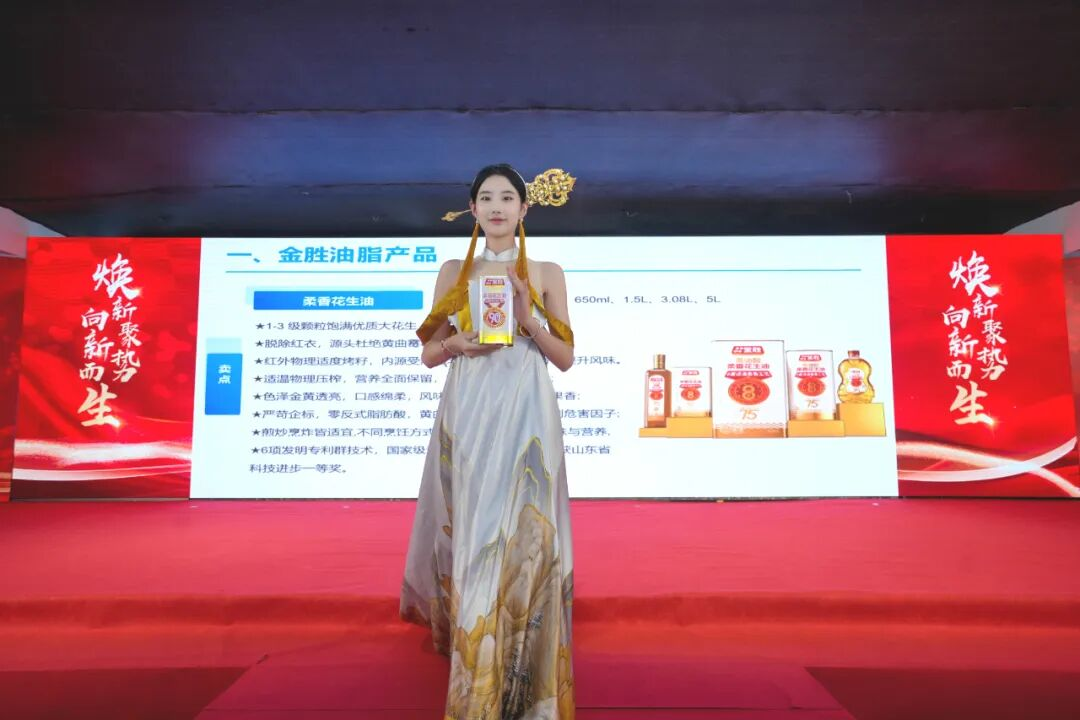 Jinsheng Group launched a series of new products, including Jinsheng Rouxiang Peanut Oil, Omega-369 Vegetable Oil, Jinsheng Health Food, and Peanut Products, at the conference. Vice General Manager Zou Yefei of the group conducted product promotion on site, comprehensively explaining the core competitiveness of Jinsheng's new products from raw material traceability, process innovation to health benefits.