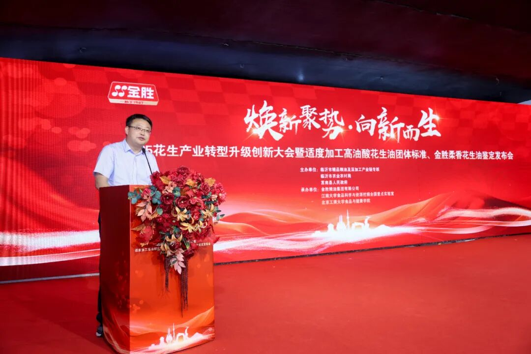At the Peanut Industry Transformation and Upgrading Innovation Conference, Youth League Logo and New Product Launch Conference, Wang Yinghai, Deputy Mayor of Linyi Municipal Government and Chief of the City's Fine Grain and Oil and Deep Processing Industry Chain, Li Wei, Deputy Secretary of Junan County Committee and County Government County Mayor, He Dongping, President of the Oil and Fat Branch of the China Grain and Oil Society and Professor of Wuhan Light Industry University, and Gao Guanyong, Chairman and General Manager of Jinsheng Group, delivered speeches respectively.